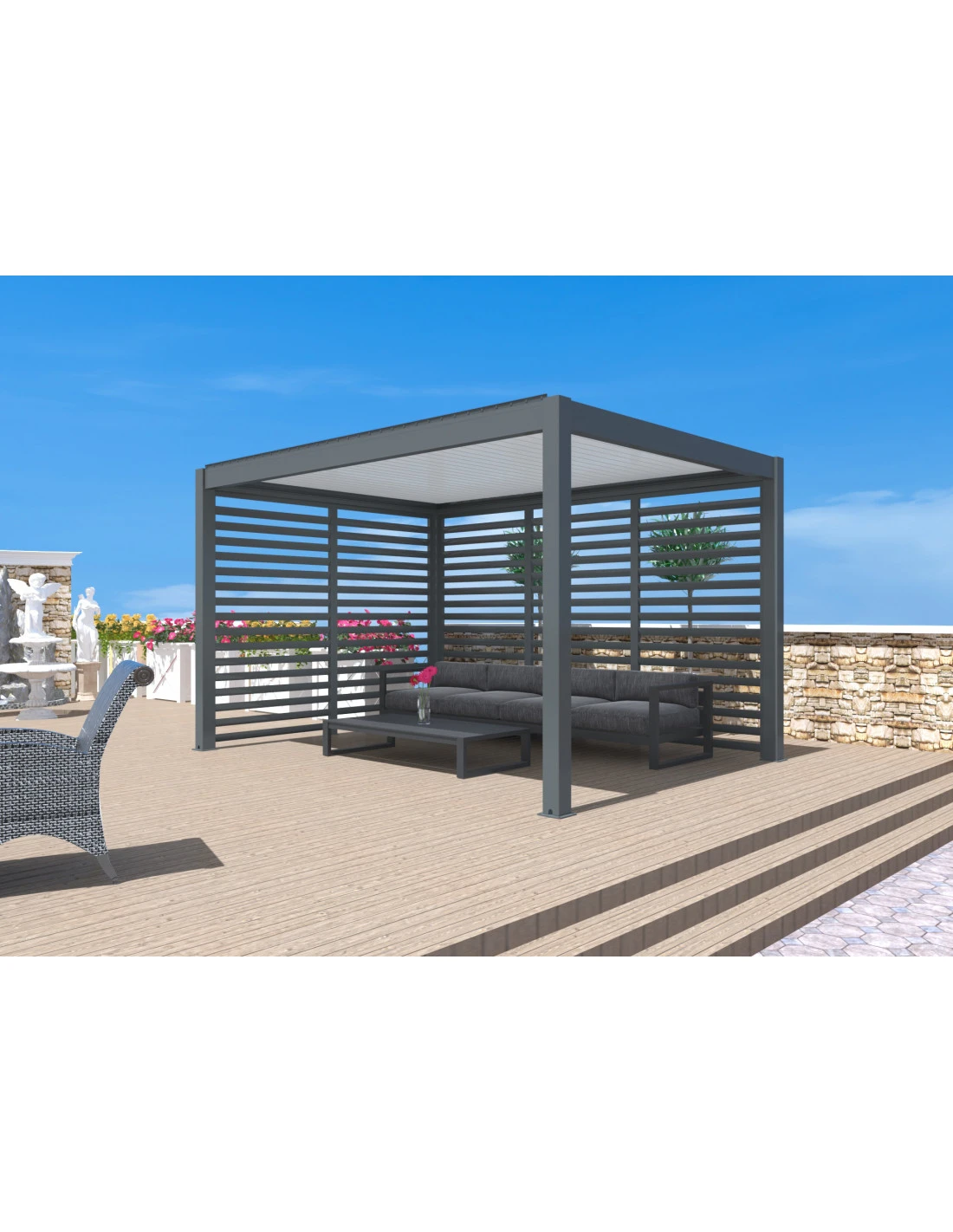 Tonnelle Bioclimatique Eris Manuel 4x4m En Aluminium Grey Blanc