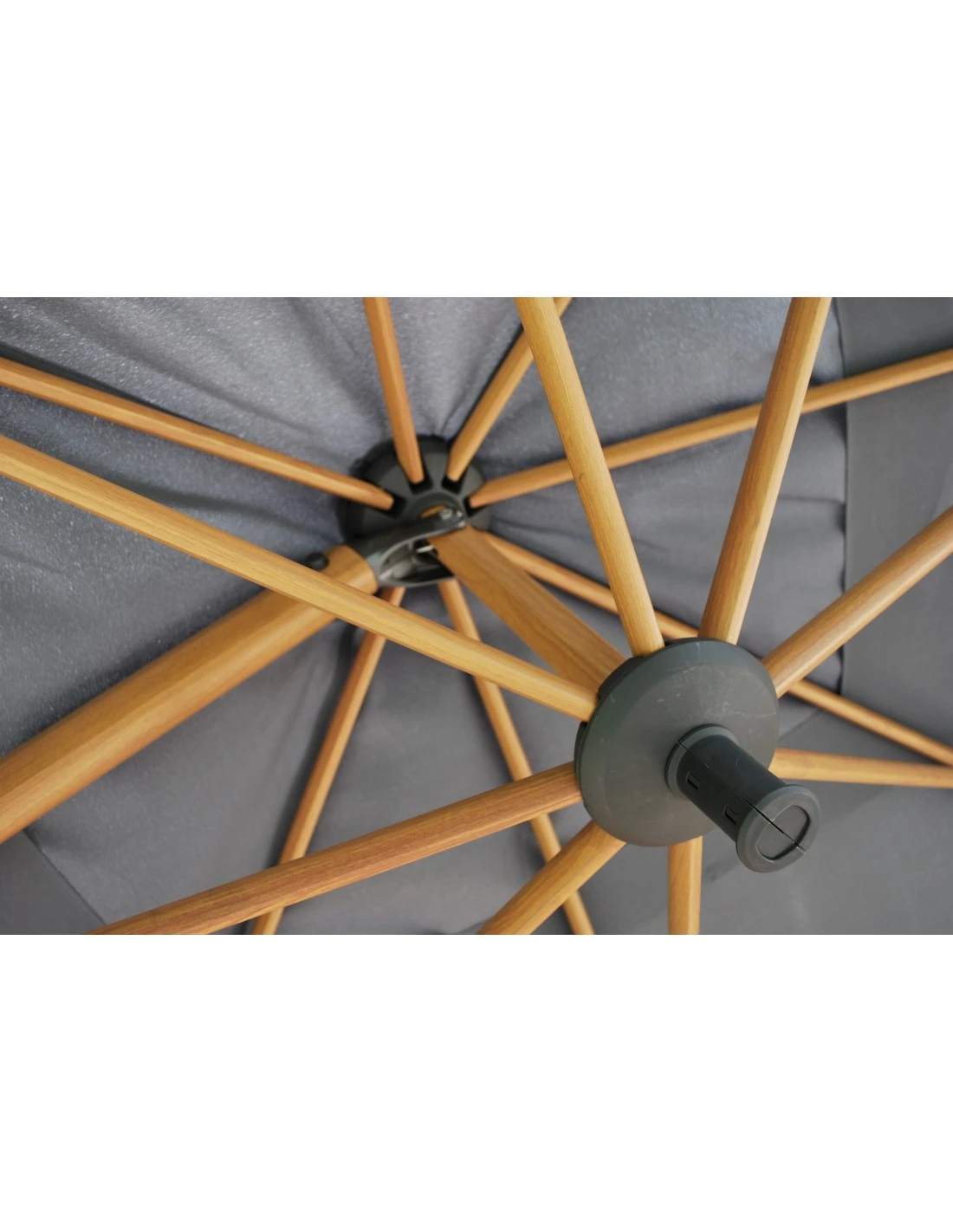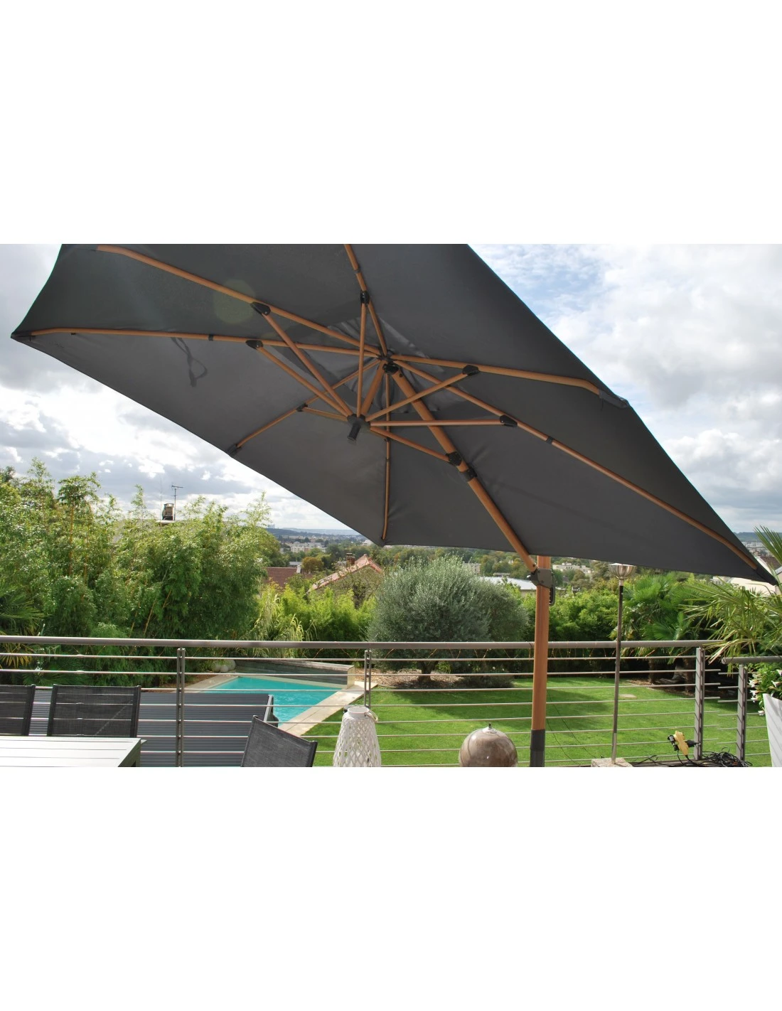 Un parasol déporté orientable et inclinable effet teck garanti !