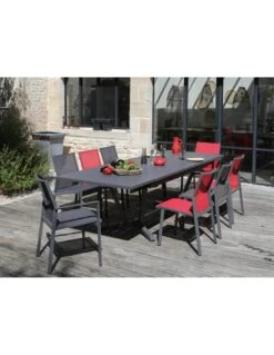 Fauteuil De Jardin Delia Empilable En Aluminium Graphite – Graphite / Rouge