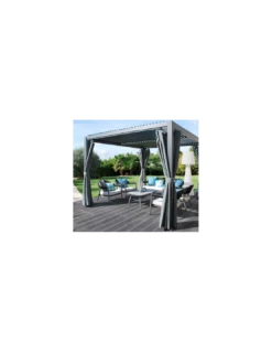 Tonnelle Bioclimatique tout en aluminium à lames orientables, fournie avec 4 rideaux latéraux pour une protection maximale !