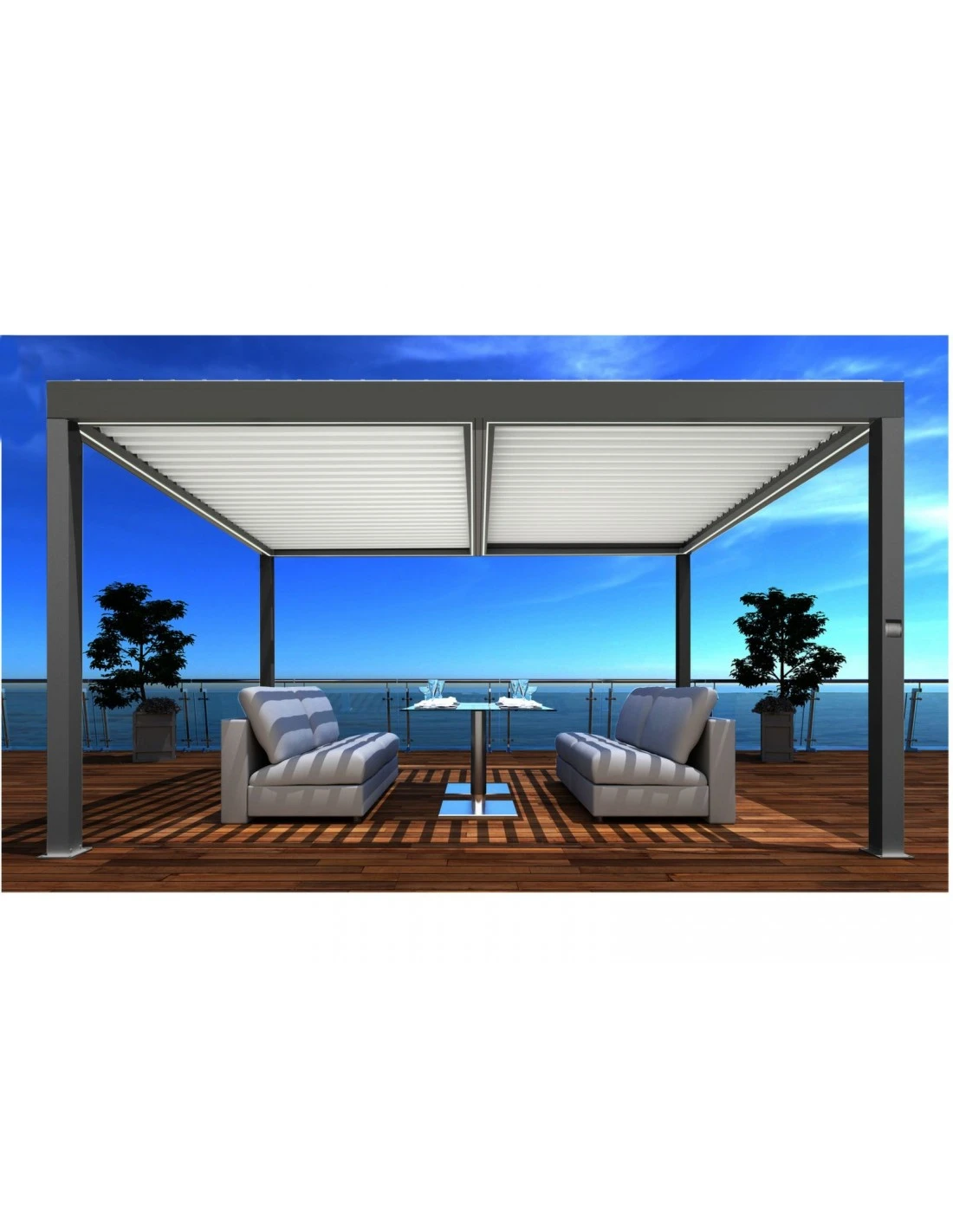Tonnelle Bio clim, gouttières intégrées avec ouverture motorisée de ces lames blanches !